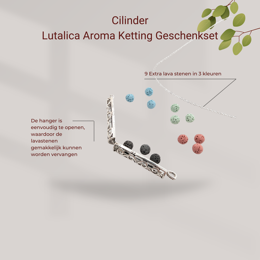 Aroma Necklace with Cylinder Pendant including 12 lava stones | Packaged in a luxurious jewelry box