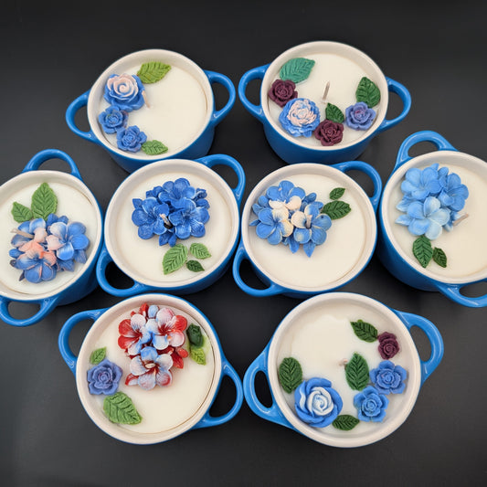 Rustic Blues - Handmade Scented Candle in Vintage Ovenpot | Gift Wrapped | Fragrance: Lutalica – Spa Day | Rapeseed Wax