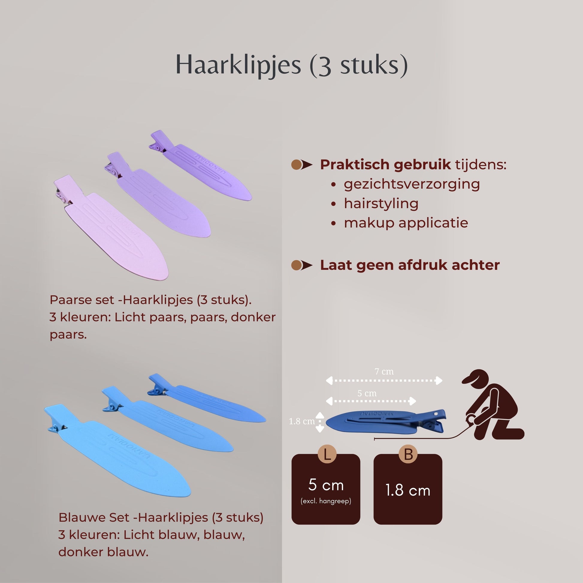 3. Hair clips (3 pieces): keep your hair out of your face during your makeup ritual or facial cleansing. Size: 7 cm (including handle).