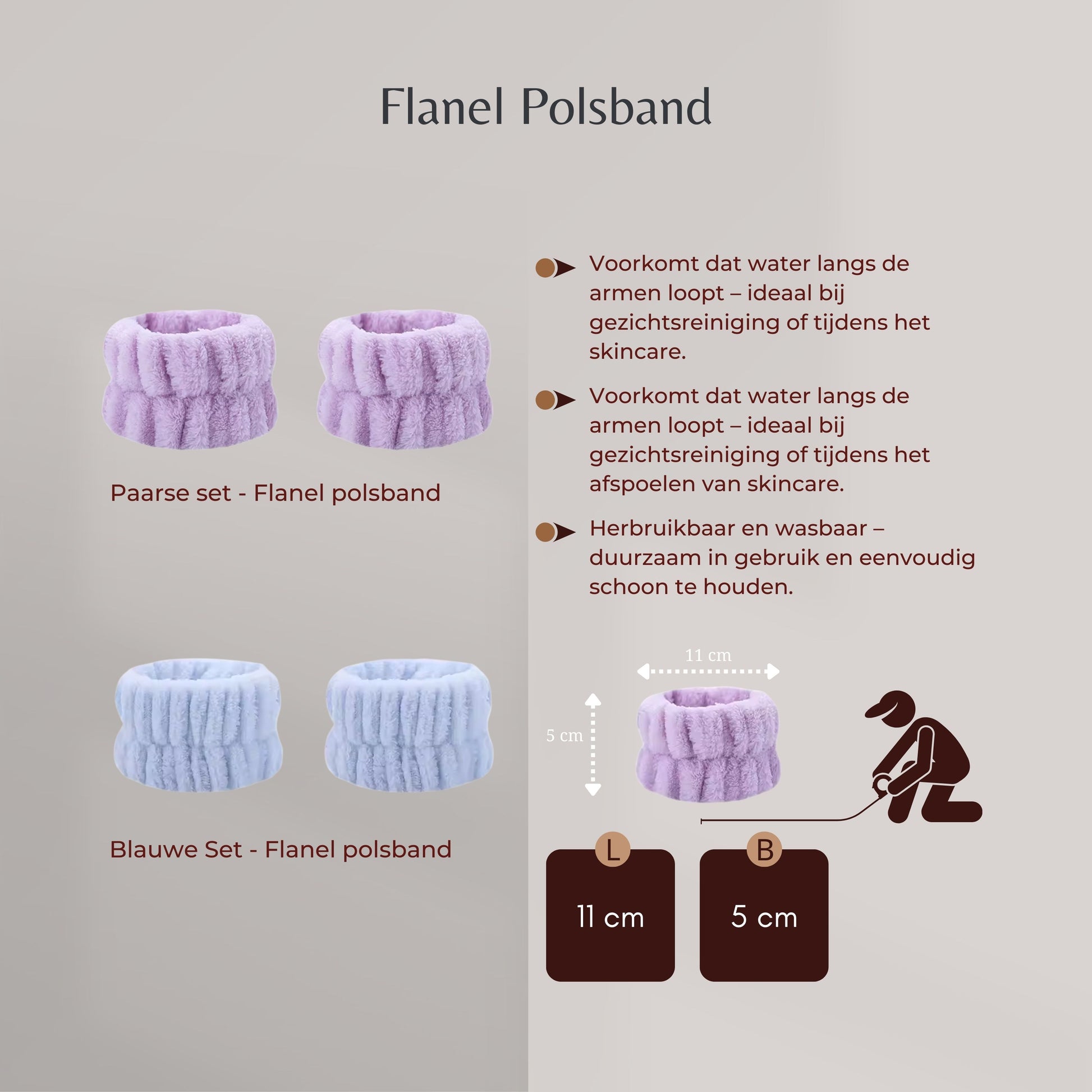 2. Microfiber wristbands (2 pieces): Wear on your wrists to keep your sleeves dry while washing your face. Size: 11-13 cm x 5 cm.