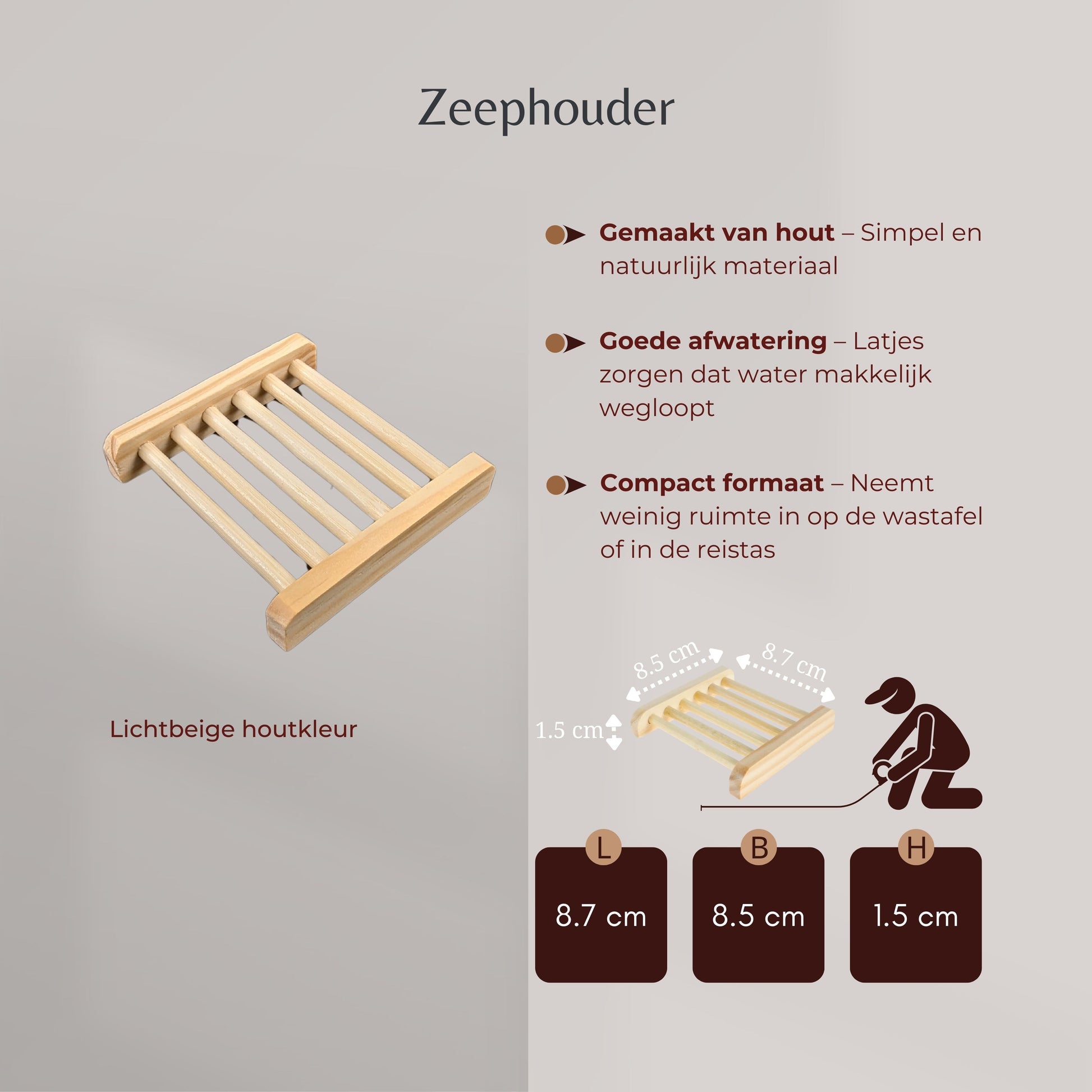 5. Wooden soap holder: Practical and durable. Size: 8 cm x 8 cm x 1 cm.