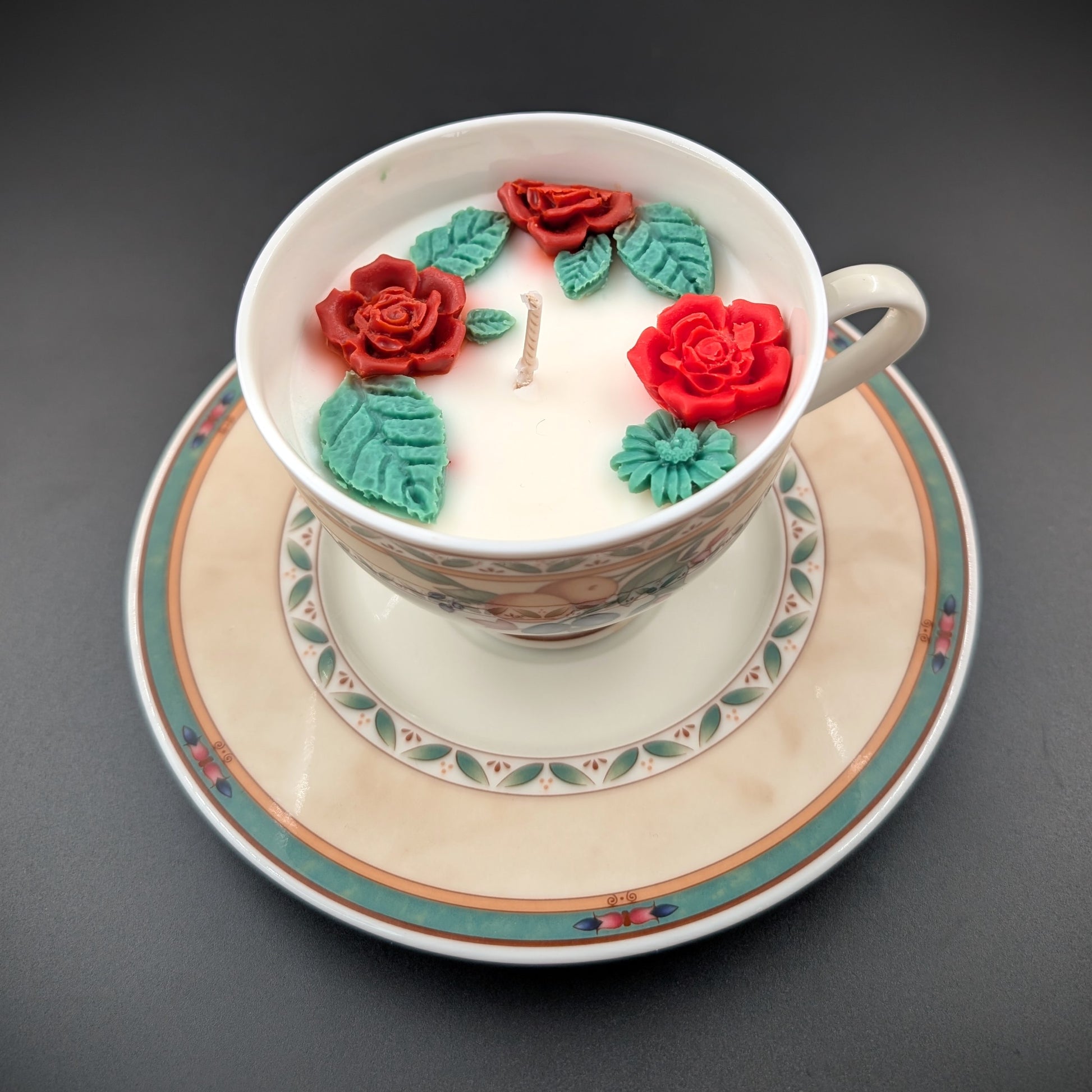 Vintage Teacup Candle – Grandma’s Hug. Made from EU plant-based rapeseed wax.